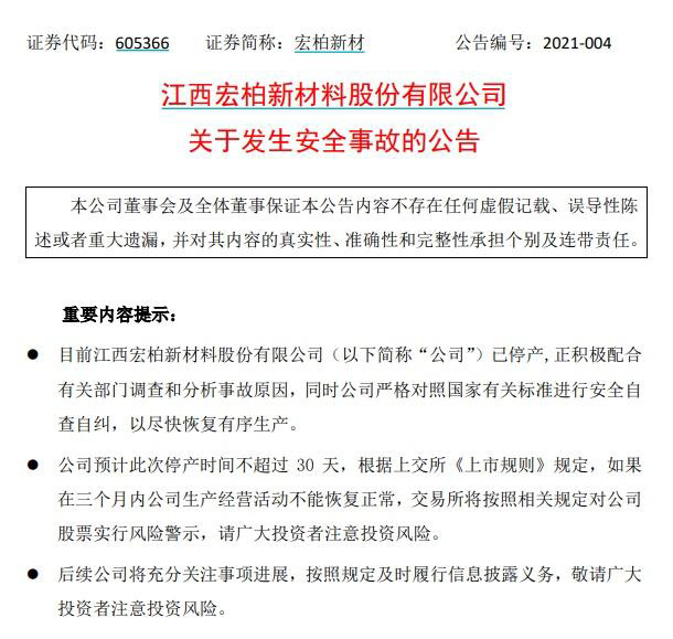 我司于2021年3月6日得知,2021年3月5日下午3:20分,宏柏新材的抗硫化返原劑生產(chǎn)車間在試生產(chǎn)過(guò)程中發(fā)生火災(zāi)事故。當(dāng)晚火災(zāi)已撲滅,事故現(xiàn)場(chǎng)已得到有效控制。作為宏柏新材的設(shè)備供貨商之一,我們中核...