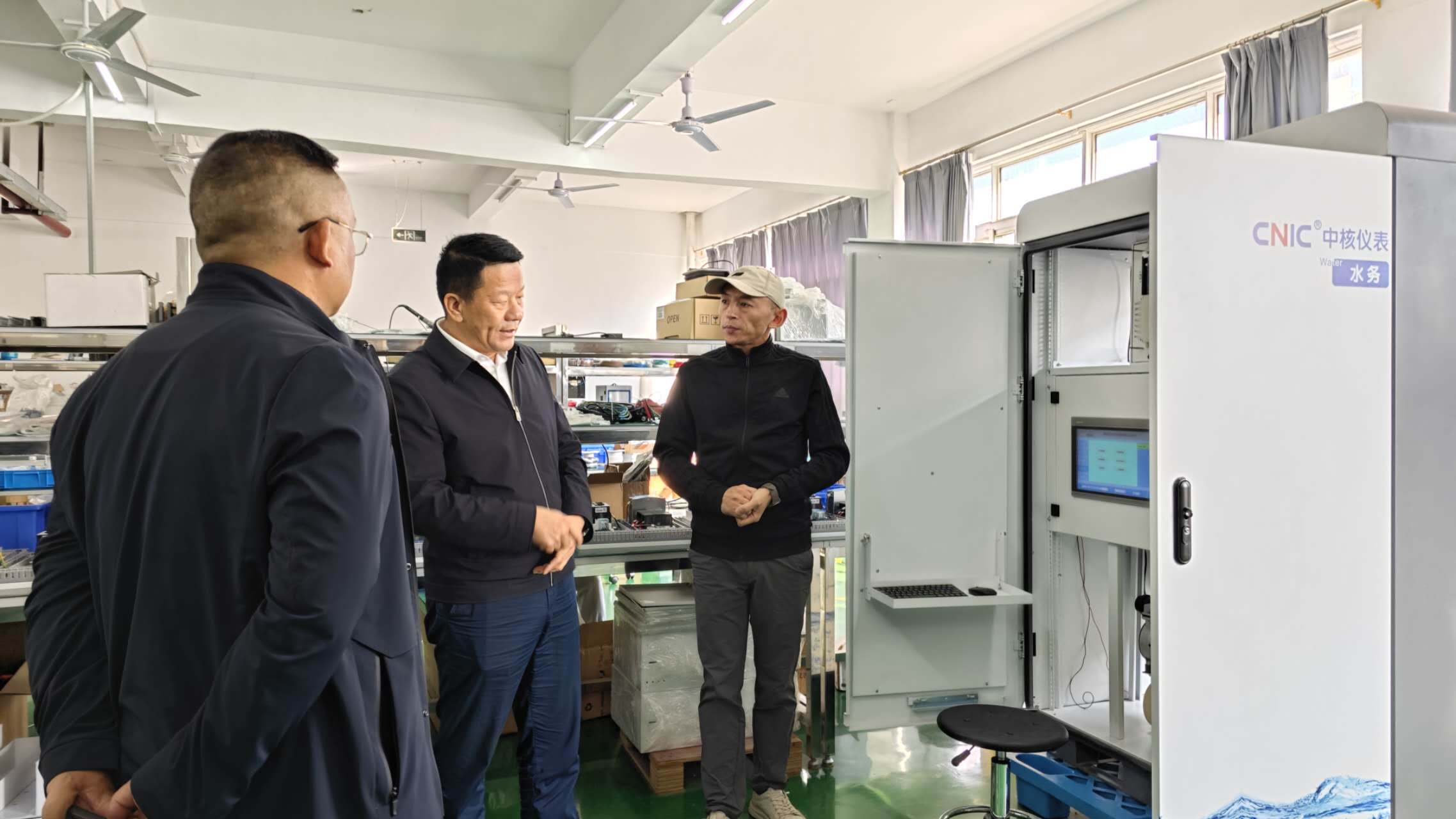 各位領(lǐng)導(dǎo)在中核儀表副總經(jīng)理劉國(guó)赤的陪同下,參觀了生產(chǎn)區(qū)、辦公區(qū)及產(chǎn)品展示區(qū),詳細(xì)了解中核儀表在工業(yè)及水務(wù)領(lǐng)域的業(yè)務(wù)布局,沉浸式感受過(guò)程控制、水質(zhì)監(jiān)測(cè)儀表從來(lái)料加工、組裝測(cè)試一直到包裝出貨的全流程運(yùn)營(yíng)管理。